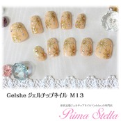 柔らかいヌーディベージュに花火のように咲いたフラワーが